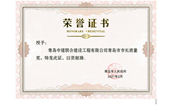 公司在城市更新和城市配套領域深耕20年,積極投身公共民用及重點民生項目建設,建成了一批規模較大、工藝復雜、技術先進的代表性工程——青島市博物館擴建、重慶高架路、跨海大橋高架路二期等項目成為青島城市發展歷程上的優秀案例,多項工程榮獲“國家優質工程獎”“中國建筑工程裝飾獎”“華東地區優質工程獎”“山東省建筑工程質量泰山杯獎”等建筑質量領域重要的獎項。
